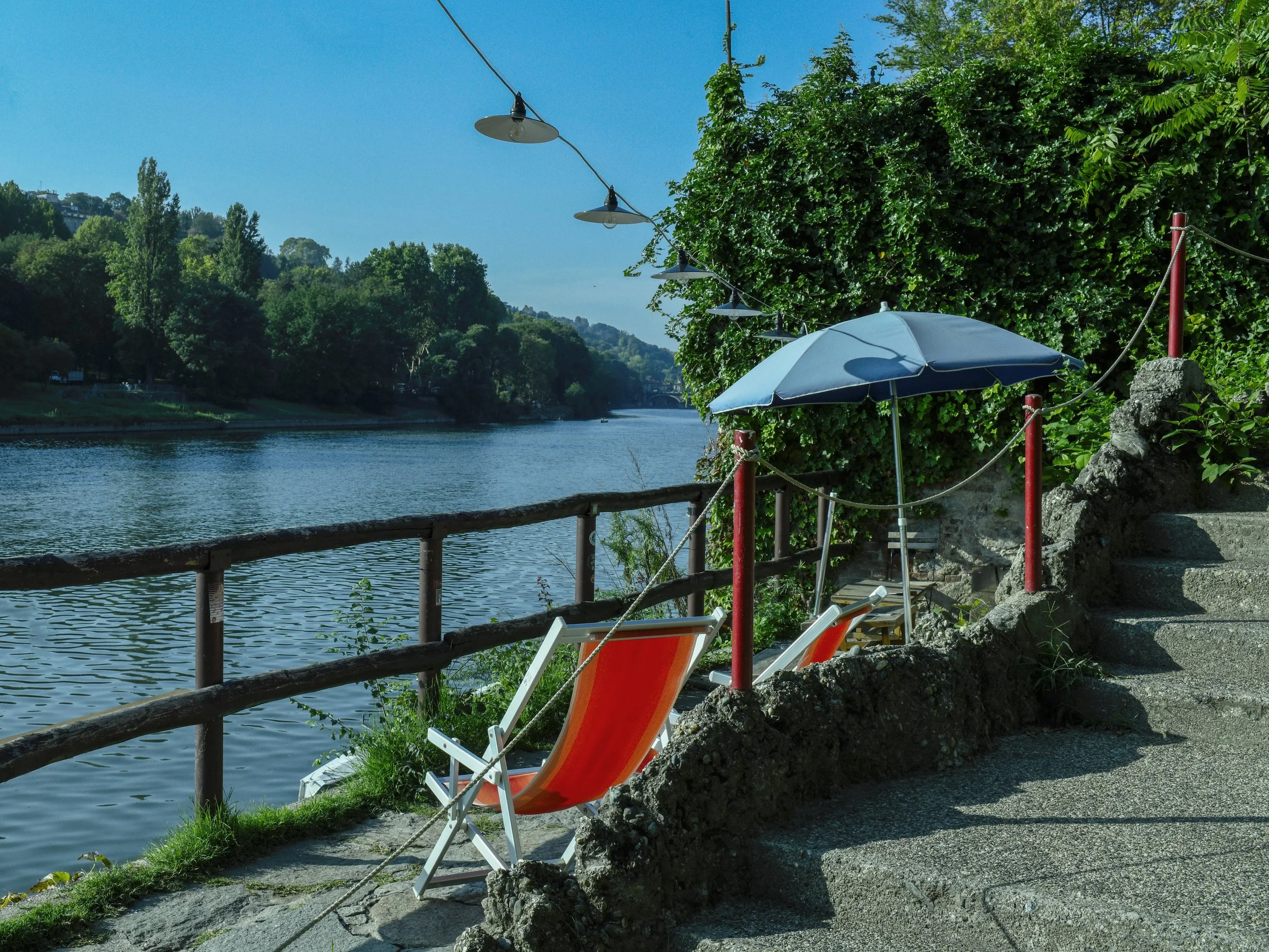 500 metri quadrati sparsi su tre livelli d’altezza e immersi nel verde tra glicini, piante aromatiche e rampicanti tropicali. Tanti spazi diversi e angoli nascosti, tavoli bassi e alti, all’ombra e al sole, le scalette sul fiume e aria da relax.